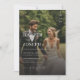 This Modern Elegant QR Code Photo Wedding Invitation features elegant handwritten script calligraphy details and classic text overlay on a couple portrait photo on the front. The back has a full bleed photo and RSVP details.