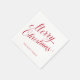 Cute paper napkins featuring modern typography and a simple design with "Merry Christmas" in an elegant red script along with your family name over a white background. These napkins are perfect for adding a personal touch to your holiday party.