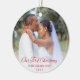 Modern typography photo ornament featuring a simple design with "Our First Christmas as Mr. and Mrs." in an elegant red script along with your last name and year over your favorite wedding picture. Add the same photo to both sides or a different one on each side. Give this ornament to a newlywed couple for their first Christmas or just keep for yourself.