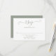 A simple elegant sage green signature script RSVP card with your details set in chic typography. Designed by Thisisnotme©