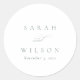 Simple Elegant Script Black & White Wedding Classic Round Sticker