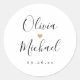 Modern minimalist script couple's names and event date, simple and elegant. great personalised favour stickers.