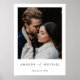 This simply chic photo wedding welcome(without the word 'welcome'!) poster template features an elegant, minimalist, modern design. It features your first names under your favourite photo conveyed with a striking blend of two distinct fonts, with 'and' in a light, flowing script between your names, which are in upper case with a bold, crisp formal look. The text is standard black. This design works best when both first names are of a fairly similar length. If one name is very long and the other is very short, the overall effect might feel unbalanced.