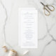 Simple plain wedding program with a clean and minimalist design featuring an elegant touch with the word "welcome" in script with swashes. A modern design with dusty blue text over a white background.