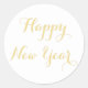 Simple Elegant Script Happy New Year Gold White Classic Round Sticker