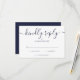 A simple elegant navy blue signature script RSVP card with your details set in modern typography. Designed by Thisisnotme©