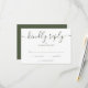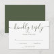 A simple elegant olive green signature script RSVP card with your details set in chic typography. Designed by Thisisnotme©
