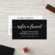 Boost your business with the Simple Elegant Script Refer a Friend black and white customisable referral card! Featuring a modern script design, this sleek and professional card is perfect for sharing referral incentives and attracting new clients in a stylish and effective way. Customisable text for the discount incentive, disclaimer, business name, service, contact information, social handle, website, phone number and address.