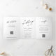 Simple elegant script RSVP QR white wedding Tri-Fold Invitation