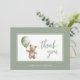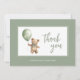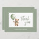 Simple modern script sage green baby boy thank you card featuring a watercolour teddy holding a balloon