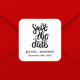 Mark the beginning of your forever with the Simple Elegant Script Save The Date Boho Wedding Square Sticker. Featuring a graceful script that embodies boho chic and understated elegance, this sticker is perfect for sealing your invitations or adorning wedding favours. Customise it with your names and wedding date, making it a personalised keepsake. This sticker beautifully sets the tone for your special day, capturing the essence of your unique love story.