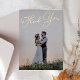 Minimalistic and elegant wedding thank you card featuring typography script text. The text says "thank you" on top of your vertical photo. You can add a photo on the front and back along with your message.