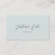 Elegant and simple business cards for any occupation feature two lines of text in soft classic grey, with your name or business name in stylish hand lettered calligraphy script lettering on a barely there pastel sea green background. Customise the back with your full contact details.