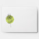 Simple elegant branding makes this unique envelope design a lovely modern choice for your business or home use. It features a botanical illustration of a dahlia bloom on a tall stem with a circle shape in bright lime green. This design is repeated on the front of the envelope as well as the inside flap. The minimalist styling with just a touch of colour makes this an appealing choice for today's business. Personalise the text template on the back flap of the envelope with your return address.