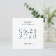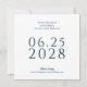 A simple, elegant and tasteful wedding save the date card that features a photo of the happy couple on the back side of the card. The text template in navy blue is easy to fill in with your info and the date is shown in large bold text to aid your future wedding guests in planning for your big day. The unique square shape of this card adds modern style and leaves a lovely impression for your recipients.