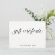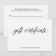 This stylish black and white gift certificate features elegant, modern typography. The back is contains plenty of room for you to totally customise with your store or company information.