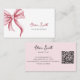 Simple Elegant Typography Pink Bow QR Code Business Card