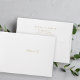 Modern stylish simple minimalist wedding invitation white and gold envelope with your custom sender return address on the backside and deliver to script on the front side.
