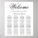 Beautifully simple and elegant, this wedding or banquet seating chart has elegant script spelling out Welcome along with the bride and groom's names. This chart is designed for 12 tables with 10 guests at each table. Personalise the text template with the bride and groom's names and the guest names at each table. This item may be ordered in other sizes as well.