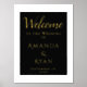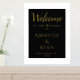Simple Elegant Black Welcome Script Wedding Gold Foil Print. Simple design with trendy script in gold foil on a black background. Elegant wedding welcome sign. Personalise all the text, bride and groom names and the wedding date.