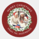 Simple Elegant Wreath Christmas Photo Family Name Classic Round Sticker
