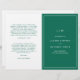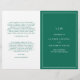 Simple folded Wedding Program featuring a modern yet elegant design with your two initial monogram along with your details surrounded by a thin border on the front cover. The inside has your wedding party on the left side and your order of ceremony on the right side. All design elements are in a jewel tone emerald green and white and may be changed in the design editing tool. A chic and stylish design that is great for a minimalist couple. These cheap wedding programs are printed on sheets of paper for a great budget friendly option.