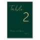 Customise this stylish simple minimalist elegant modern emerald green and gold table number card. Please note that the gold in this design is a yellow colour print, not an actual gold foil.