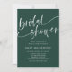 Simple bridal shower invitation template with elegant hand written style font in white on an emerald green background. Customise the text to create something really unique.