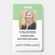 Personalise these vertical employee ID badges with an employee photo and name, along with multiple custom text fields along with the adding your logo. The title or role appears along the bottom in bold black lettering for easy identification. Customise with your barcode and return information or other details in the back.
