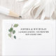 These minimalist and trendy wedding or bridal shower return address labels feature romantic watercolor eucalyptus leaves and foliage on a clean, white background.
