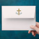Simple watercolor eucalyptus leaves with gold colour cross on a pastel blush pink envelope for Christian baptism invitations or religious occasions. Please see this collection for coordinating invitations.