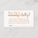 Neutral autumn dusty burnt orange and white "how big is mummy's belly" baby shower or gender reveal party guessing game enclosure card featuring a fun, casual hand-lettered script. The classic design includes a modern handlettered quote typography overlay. For other colours or matching products, please visit the JustFharryn Zazzle store, or contact the designer, c/o Fharryn@yahoo.com All rights reserved. #bohochic #zazzlemade
