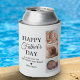 Minimalist father's day can cooler featuring a simple white background, the message "happy father's day", a saying that reads "I love you to the moon and back", a cute heart, and your childrens names. Plus 6 family photos for you to customise with your own to make this an extra special dad gift.