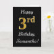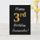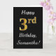 This simple birthday card design features the message "Happy 3rd Birthday", with the "3rd" having a faux gold-like appearance. It also features a custom name, and a black background. It could be given to somebody who is celebrating their third birthday.