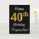 This simple birthday card design features the message "Happy 40th Birthday", with the "40th" having a faux gold-like appearance. It also features a custom name, and a black background. It could be given to somebody who is celebrating their fortieth birthday.