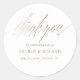 This elegant wedding favour sticker features a shimmering faux metallic gold "Thank You" on a pristine white background, adding an elegant and personal touch to your wedding favours. Customise with your names and wedding date to create a unique keepsake for your guests. The simple yet sophisticated design perfectly complements any wedding theme, making it a beautiful finishing touch to your special day.