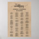 This simple faux kraft alphabetical seating plan poster is perfect for a rustic wedding. This sign can be used to organise your guests alphabetically or by table number. The minimalist design features an elegant brush script font and a lovely feminine heart on a faux kraft background. This wedding poster includes enough room for up to about 160 guests. In addition to the placement of each guest, personalise this sign with the names of the bride and groom and the wedding date.