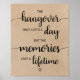 This simple faux kraft hangover and memories poster is perfect for a rustic wedding. The sign reads "the hangover only lasts a day but the memories last a lifetime". The minimalist design features an elegant brush script font and a lovely feminine heart on a faux kraft background.