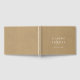 Rustic and simple wedding guest book with a faux brown kraft paper background and white script.