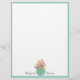 Design features a mint green vase with pink and yellow flowers, with a matching border on front and back.