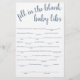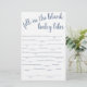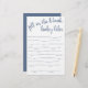 Simple fill-in-the-blank baby shower or gender reveal party word game featuring a fun, casual hand-lettered script. The classic design includes a modern handlettered quote typography overlay. For other colours or matching products, please visit the JustFharryn Zazzle store, or contact the designer, c/o Fharryn@yahoo.com All rights reserved. #bohochic #zazzlemade