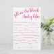 Simple fill-in-the-blank baby shower or gender reveal party word game featuring a fun, casual hand-lettered script. The classic design includes a modern handlettered quote typography overlay. For other colours or matching products, please visit the JustFharryn Zazzle store, or contact the designer, c/o Fharryn@yahoo.com All rights reserved. #bohochic #zazzlemade