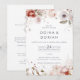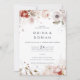 This simple floral all in one wedding invitation is perfect for a rustic wedding. The whimsical boho design features rustic blush pink, burgundy and marsala flowers with a moody and romantic tone. Save paper by including the details on the back of the wedding invitation instead of on a separate enclosure card. Include the RSVP info as well if your guest will be replying electronically (optional).