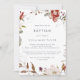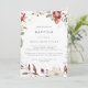 This simple floral baptism invitation is perfect for a rustic baby baptism. The whimsical boho design features rustic blush pink, burgundy and marsala flowers with a moody and romantic tone.