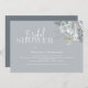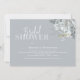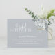 This design features watercolor floral foliage dusty blue, a QR code with map directions for online, bridal shower event, modern elegant calligraphy script font, simple elegant botanical greenery rose, modern simple minimalist typography font, fall winter summer spring style, romantic soft elegance simplistic, web address add your URL, the night before