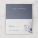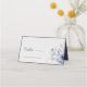This is an elegant dusty blue wedding place card with a light blue and navy blue watercolor flowers It is perfect for a floral winter wedding celebration.