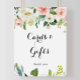 This simple floral green foliage cards and gifts sign is perfect for a tropical wedding or bridal shower. The design features lovely white, pink, and blush hand-painted roses embedded in green foliage, inspiring artistic beauty.