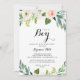 This simple floral green it's a boy baby shower invitation is perfect for a tropical baby shower or sprinkle. The design features lovely white, pink, and blush hand-painted roses embedded in green foliage, inspiring artistic beauty.