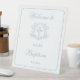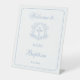 Simple Floral Light Blue Cross Baptism Welcome Pedestal Sign