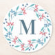 Simple Floral Wreath Monogram Round Paper Coaster